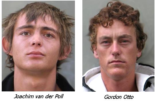 Van der Poll het voorheen 'n pleitooreenkoms van selfverde-diging met die staat aangegaan nadat hy 'n man van Blompark met 'n mes doodgesteek het. Otto was ook vantevore aangekla van misdrywe wat met geweld verband hou. Landdros Retief het in sy uitspraak gesê dat Riaan in 'n fetus posisie gelê het terwyl die twee hom geskop het. Hy het om hulp geskree terwyl daar 'n oormag van sowat twaalf om hom gestaan het. Hy het dus nie 'n kans gestaan om homself te verdedig nie. Van der Poll is Woensdag tot R6000 boete en een jaar opgeskorte tronkstraf gevonnis. Otto het ook tot 'n jaar opgeskorte tronkstraf en 'n boete van R4000 ontvang.
