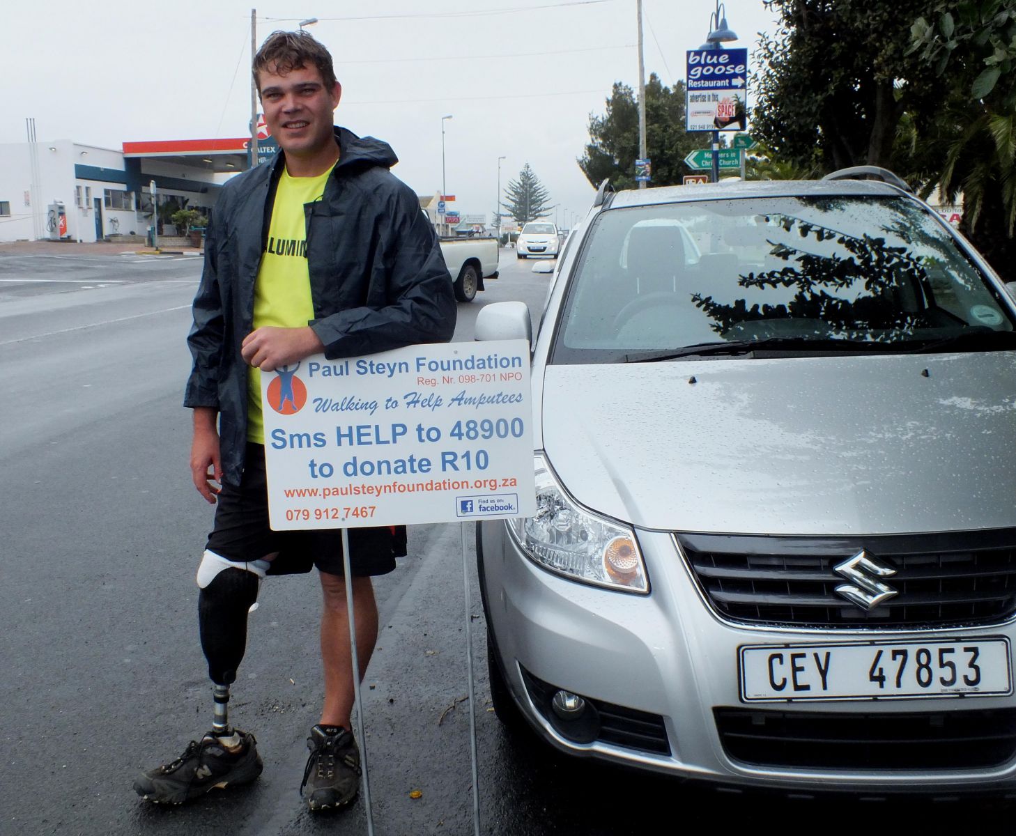 Paul Steyn het op 17 Maart 2014 met ‘n staptog vanaf Agulhas na Kleinmond begin en op Vrydag, 21 Maart in Gansbaai aangekom - met ‘n kunsbeen, nadat sy regterbeen in 2000 as ‘n 13-jarige skoolseun direk onder die knie geamputeer is.