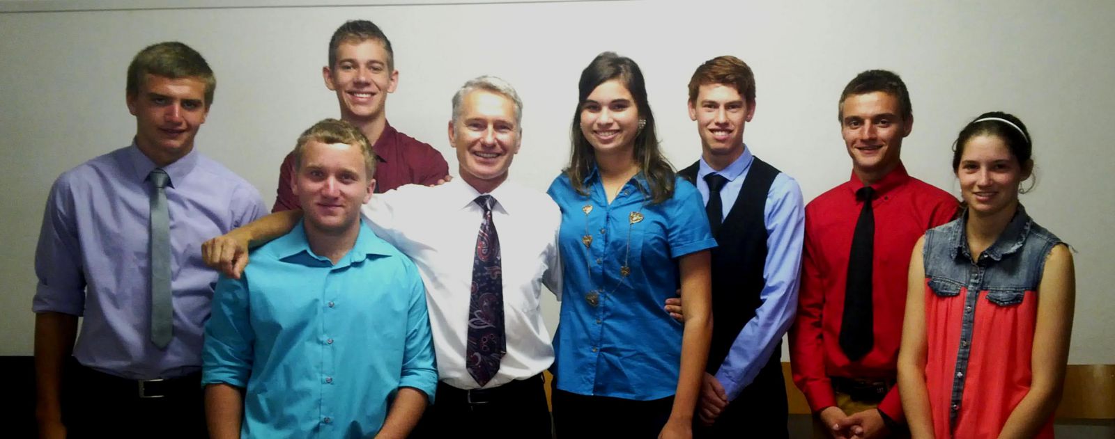 Die Belydenisgroep van die NG-gemeente Gansbaai, met vlnr André-Pierre Gouws, Schalk le Roux, Emile Smith, ds Willie Kotze, Janelle Smit, Chad Kruger, Johann Truter en Monique Grebe
