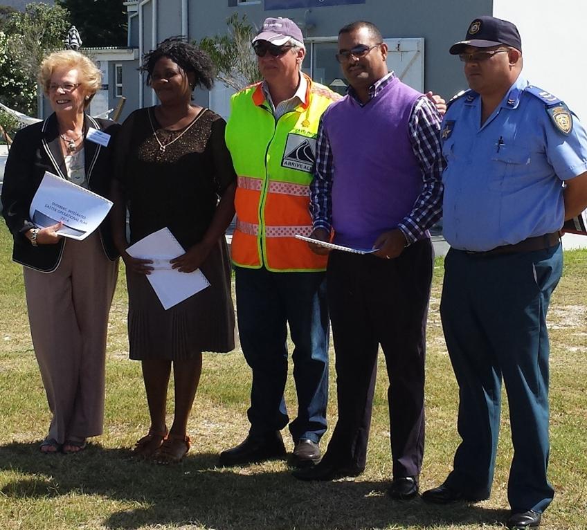 Vlnr is Overstrandse Uitvoerende Burgemeester, rdl Nicolette Botha-Guthrie, Brigadier Makawu SAPD, Adjunk-Direkteur David Frost van die Dept van Vervoer en Verkeers-Offisier Virgil Bester