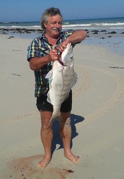 Pietie Visser van Franskraal het tydens die langnaweek van 21/03/2014  hierdie knewel van 'n steenbras van 6kg by Die Gruis uitgetrek.