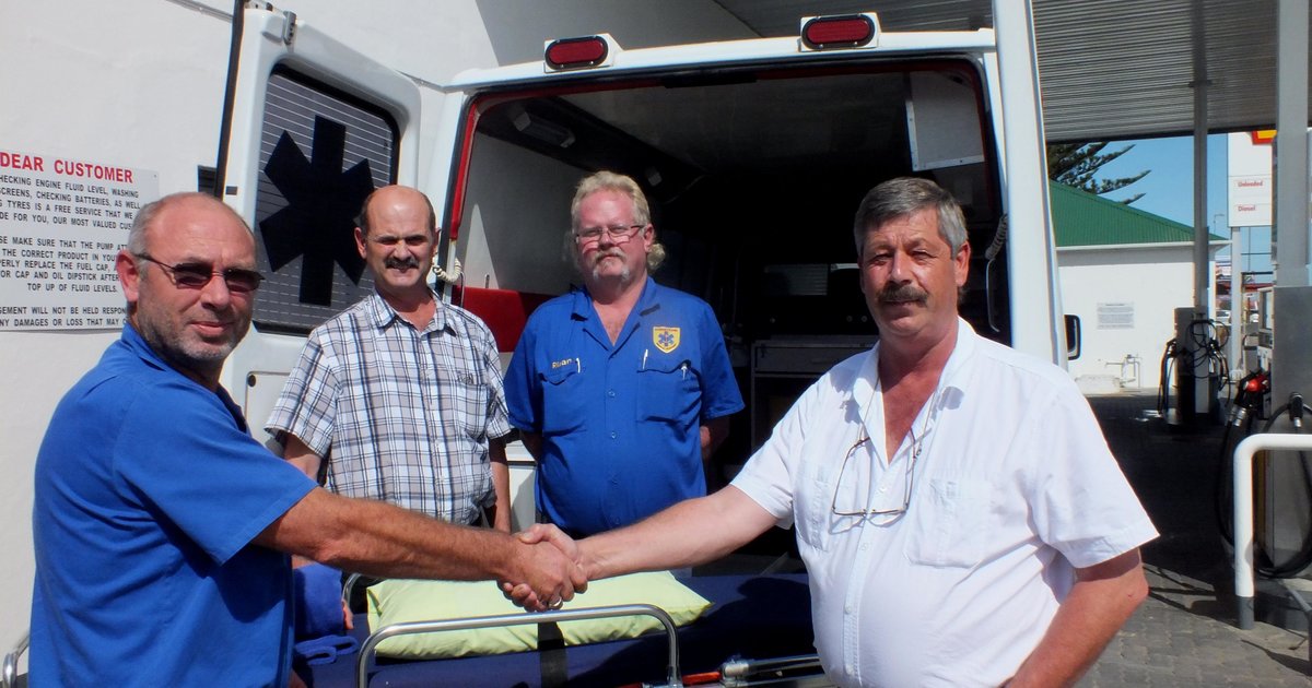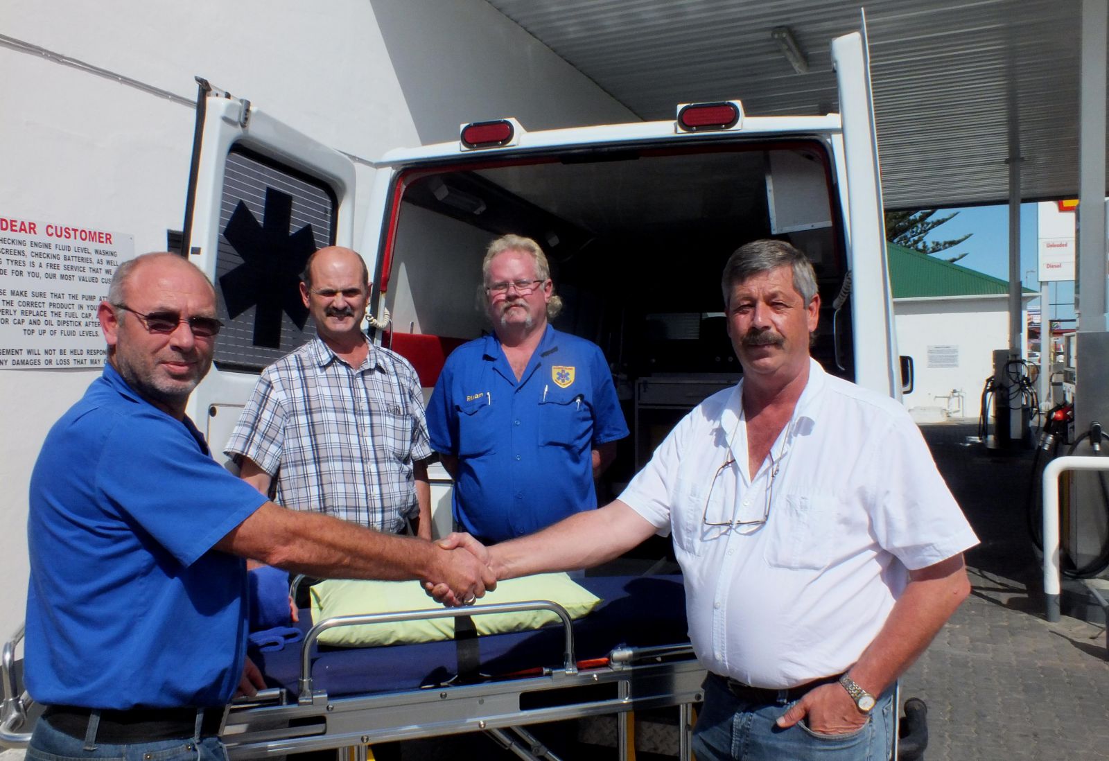Overstrand Medical Response (ORM) se dankbaarheid het onlangs hoog geloop met die oorhandiging van ‘n nuwe ambulansbed aan hulle. Die duursame bed is deur Attie Louw, eienaar van Gansbaai Vulstasies, as ‘n welwillendheidsgebaar aan ORM geskenk. “Dit is goed om iets op hierdie wyse in die gemeenskap terug te ploeg,” het Attie gesê. Die Bestuurder van Gansbaai Vulstasies, Schalk Strauss, was ook tydens die oorhandiging aan Cassie Carstens en Riaan Buys van ORM teenwoordig.
