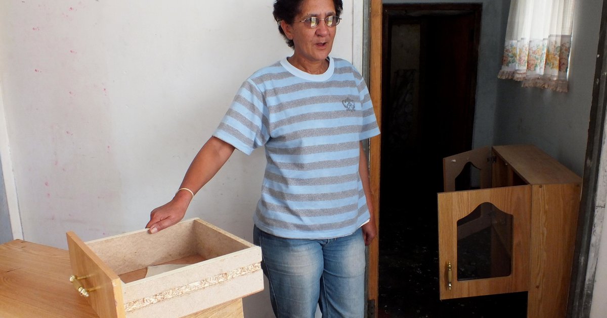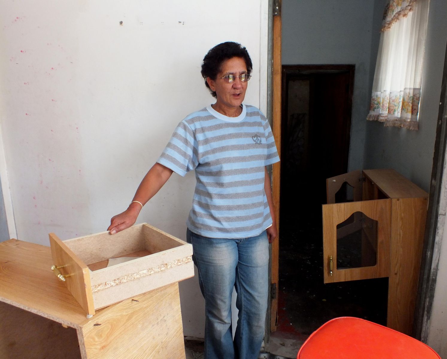 Jacoba Europa in een van die vertrekke waar die deur, vensters en selfs kaste met ‘n byl bygekom is