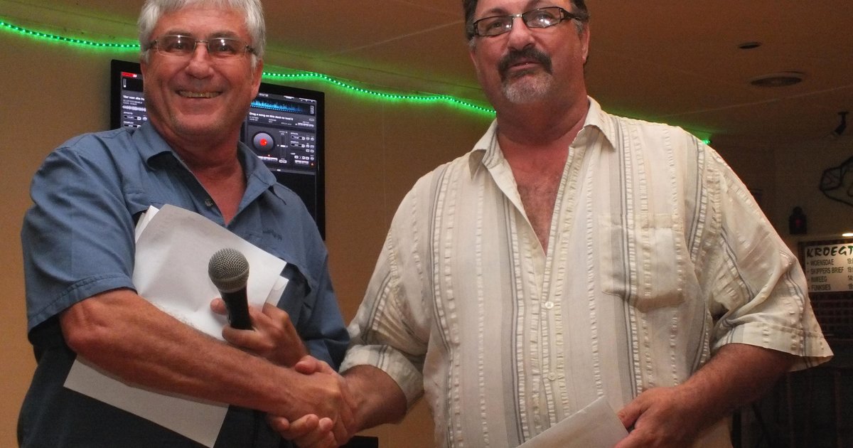 De Wet Giliomee het die swaarste vis (Rooi Roman - 2.1kg) gevang, met Johan Burmeister wat die swaarste sak ingepalm het, terwyl net hyself en sy dogter, Yolandi, die boot beman het. (Volledige uitslae in die volgende uitgawe) Daarna kon die aand se genietinge begin, met smaaklike stokvis, skyfies, slaaie en ‘n nagereg. Voor en na die ete het Raymond Rabe soos gewoonlik die Musiekfabriek behoorlik aan die gang gehou en kon die jeukende voete tot baie laataand op die dansvloer gekrap word. Klublid Johan Hanekom is spesiaal gelukgewens met sy 75ste verjaardag die volgende dag op 13 April, asook met hy en sy eggenote, Cecile se 53ste huweliksherdenking op 15 April. Johan Wiesie het vir klublid Annette Lötter gekry om die geluktrekkings te doen, met Pop Malan en Derrick Jerrard wat elk ‘n gelukkige wenner van ‘n goeie bottel wyn was.