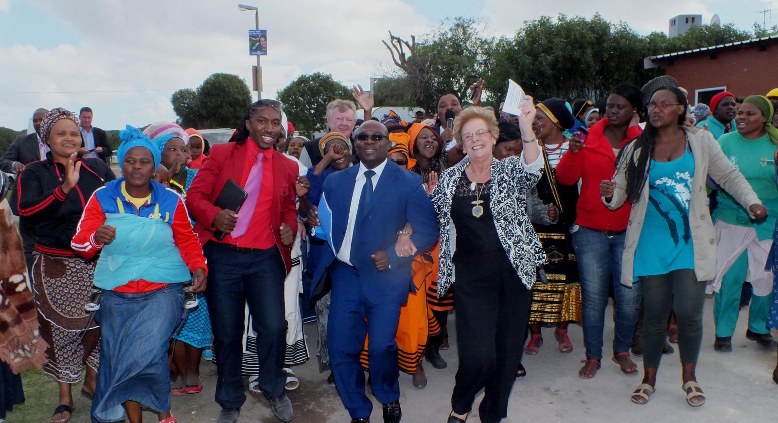 ‘n Groot groep singende en dansende opgewonde inwoners van Eluxolweni het die minister ingewag en hom van sy motor af saam met Overstrandse Uitvoerende Burgemeester, rdl Nicolette Botha-Guthrie, na hulle sitplekke begelei. Die seremoniemeester, mnr Kat Myburg, Areabestuurder van die Overstrandse Munisipaliteit se Gansbaai Administrasie, het die voorlopige verwelkomings behartig en me Shirley Coetzee, Wykskomiteelid vir Wyk 11, het die geleentheid met Skriflesing en gebed geopen. Rdl Dudley Coetzee, Wyksraadslid vir Wyk 11, het die amptelike verwelkoming behartig. Die Direkteur: Gemeenskapsdienste, mnr Roderick Williams, het volledige agtergrondgeskiedenis oor die informele nedersetting behuisingsprojek in Eluxolweni aan die toehoorders oorgedra. Mnr Williams het bevestig dat hierdie projek teen 31 Mei vanjaar afgehandel moet wees. “Vandag is net 4 huise seremonieël oorhandig, met die res wat teen die einde van April oorhandig sal word,” het hy gesê. “Die laaste fase sal wees die registrasie van al 183 huise in die naam van die begunstigdes.”