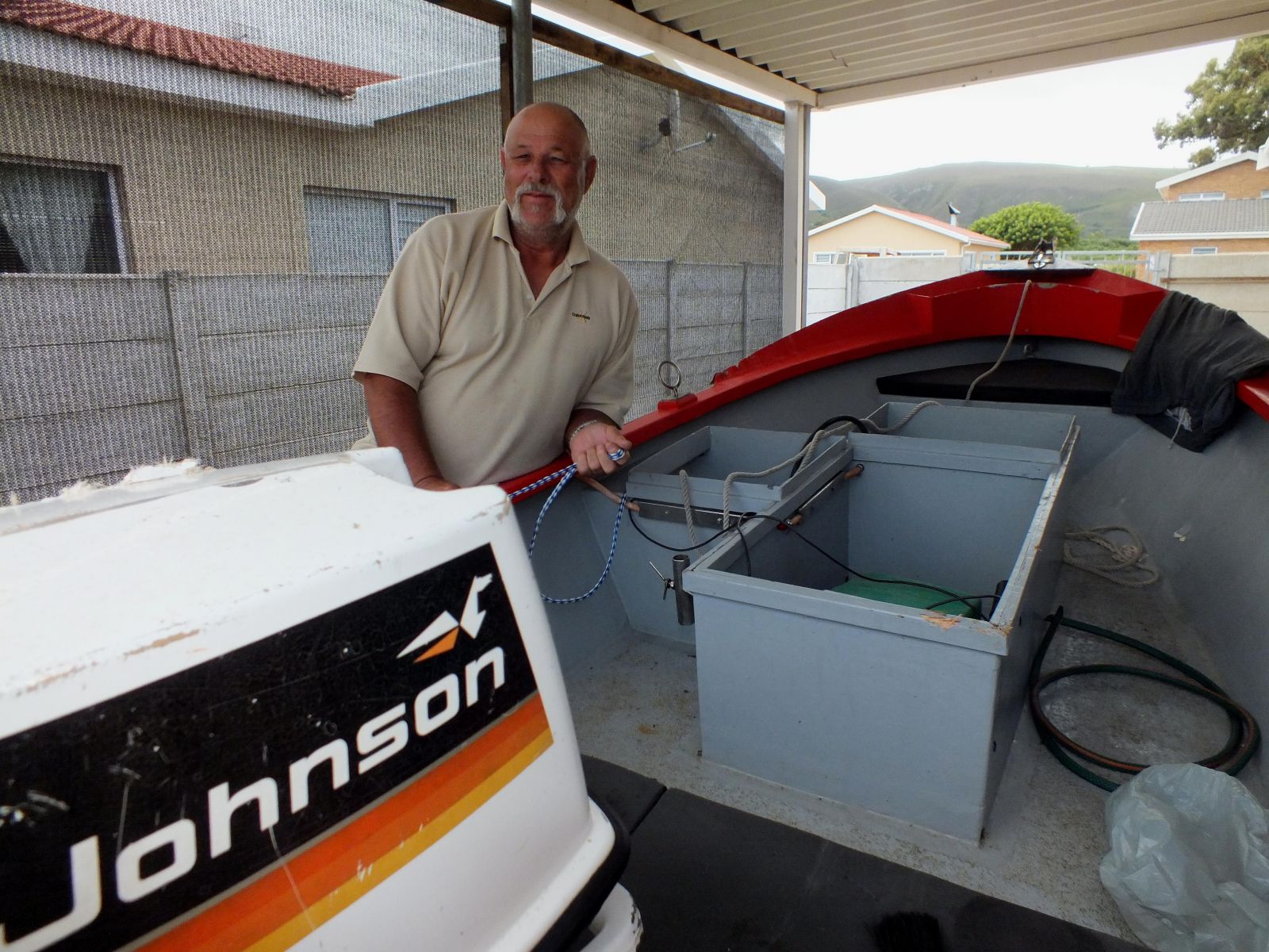 Louis Otto by Marius van Rensburg se boot wat by Blousloep deur ‘n golf omgeslaan is, met Marius wat niks van ‘n kamera wou weet nie