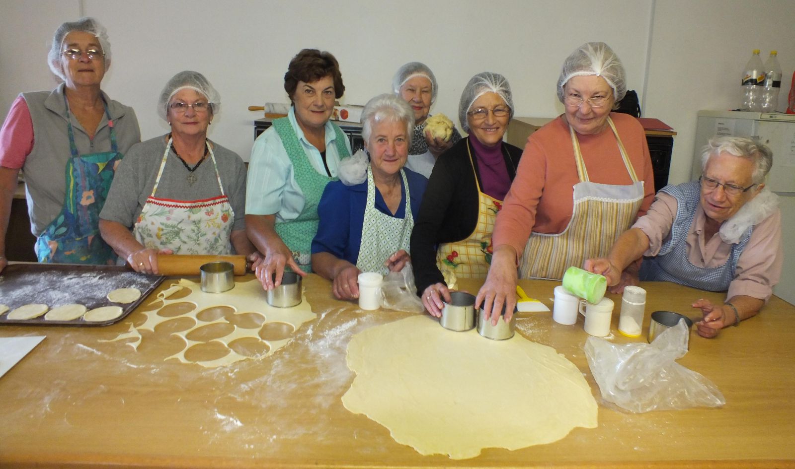 Daar sal iets vir elkeen én na elkeen se smaak wees. Dit sal wissel vanaf volgelaaide Tombola- en Wit Olifanttafels, groot- en kleinkoekies, melkterte, verleidelike poedings, koeksisters en viskoekies tot by groente, vleis, etes in die restaurant op die verhoog en vele items om te koop om huis toe te neem. Die dames verantwoordelik vir die vleispasteie onder leiding van Francia van Dyk, oortref vanjaar hulle vorige getalle deur te sorg dat daar 2,000 pasteie, hoender en wild, gaan wees - en dit is “ou nuus” hoe daardie pasteie smaak. Hulle het ook 1,500 pasteie vir Pearly Beach se basaar verlede week gebak. Hulle mag maar pasteie bak. Alice Bredenkamp en haar span kleinkoekie-baksters waarborg ook weer vele dosyne kleinkoekies wat tuis “blik” toe kan gaan vir daardie heerlike “agterna”.