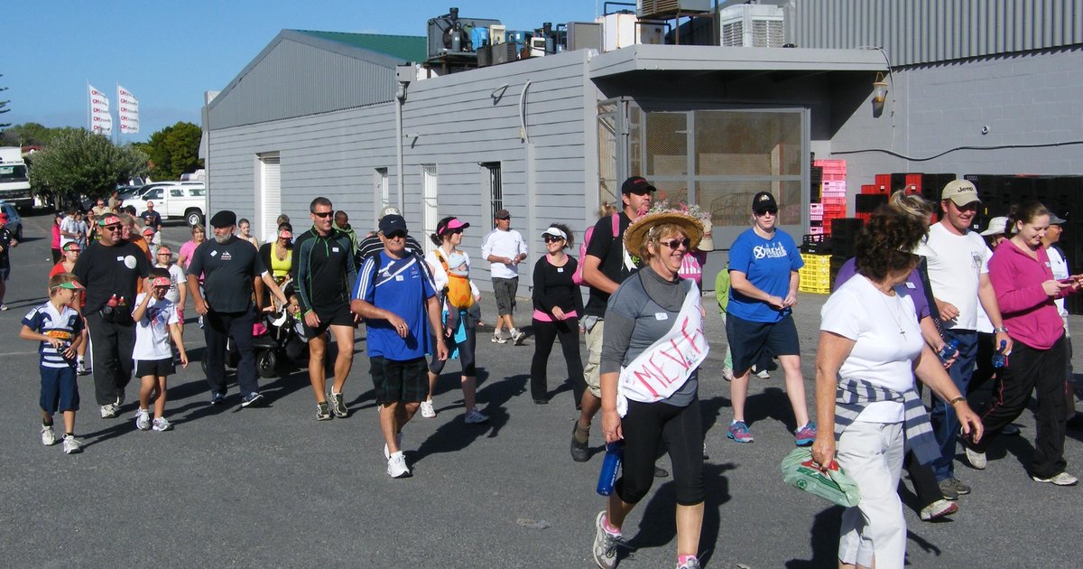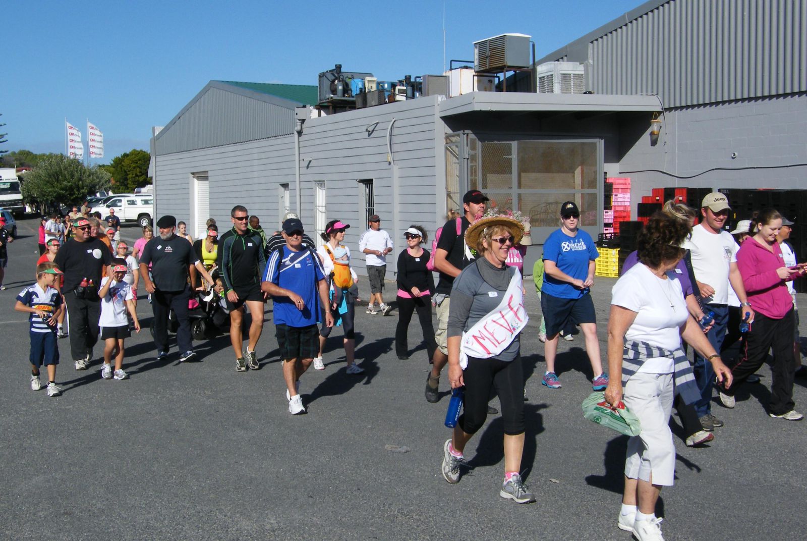 Die wegspring van ‘n vorige gesellige “Fun Walk” by Gansbaai OK Foods, hierdie keer ten bate van De Kleine Gansies (Argieffoto: Gansbaai Courant)