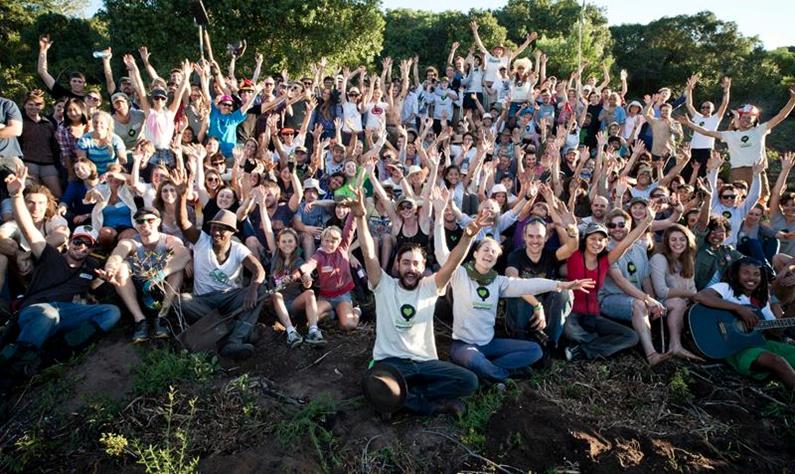 The happy “tree-planting” family members of Greenpop at Platbos Forest