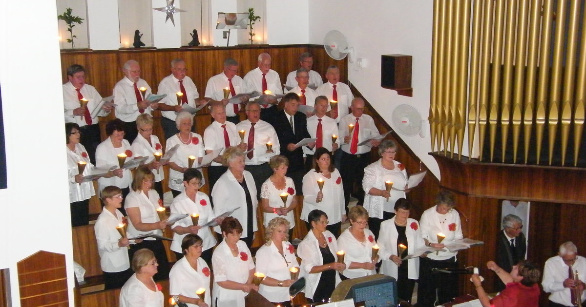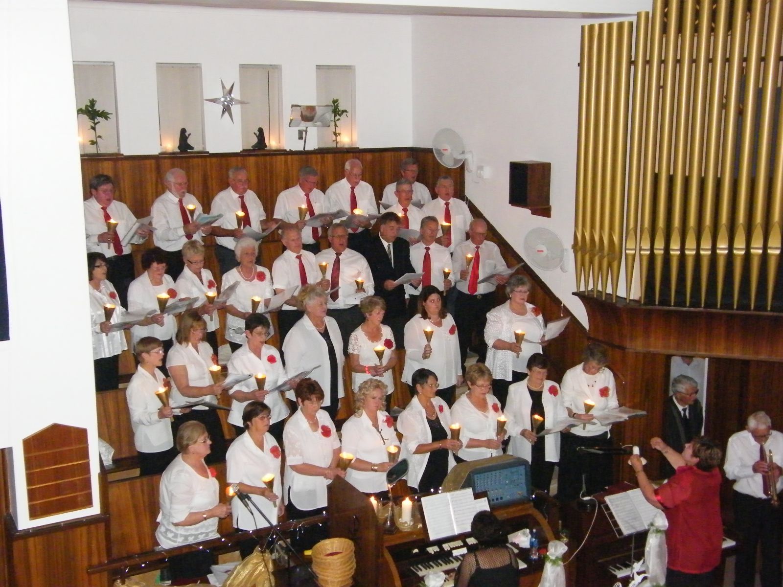Aletta Lochner, koorleidster/-dirigent en haar Koorkomitee se reëlings was puik en die verrigtinge het uitstekend verloop. Die Kerssangdiens het uit hartlike samesang, asook optredes deur 4 kore plaasgevind.