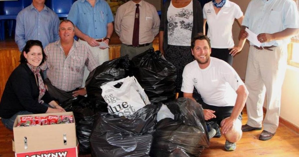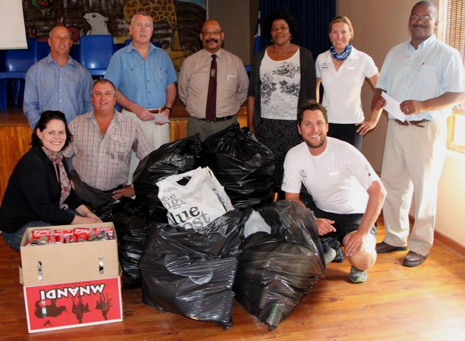 "Ons is versoek om 'n toeligtingsgeleentheid vir hulle te reël en het besluit om die vier skole daarby te betrek," vertel Andrè. Die skoolhoofde is versoek om te reël dat elke skool 'n minimum van 150 blikke sal saambring. "Ons het onderneem om die skole R100 per blik te betaal, in ruil vir ons jaarlikse donasies aan hulle," sê Andrè. Goeie samewerking is ontvang en meer as genoeg blikke is bymekaargemaak. Die onderskeie skoolhoofde Tommy Wilson van Gansbaai Academia, Tommy Volkwyn van Gansbaai Primêr, Eben van der Merwe van Laerskool Gansbaai en Mirriam Cekiso van Masakhane Primêr. Die totale "donasie" per skool beloop dus weer R15,000, maar vanjaar moes die leerders daarvoor "werk", wat natuurlik bewusmaking om nie te mors nie, gefokus was.
