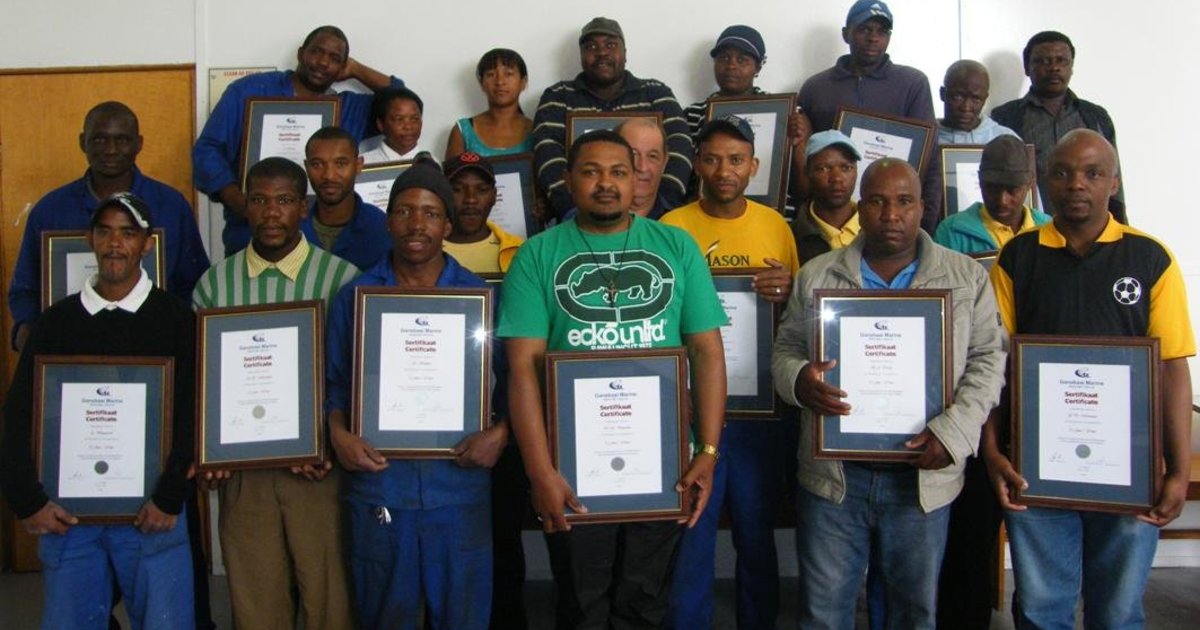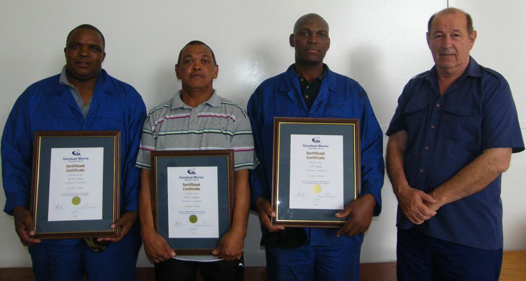 Die 27 Gansbaai Marine werknemers met 10 diensjare agter die rug nadat hulle hul Langdienssertifikate ontvang het