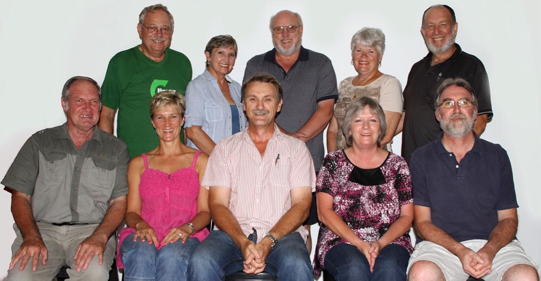 Die nuutverkose Bestuur van Gansbaai Fotografieklub ná hul AJV, met voor vlnr Hardus Botha, Linda Kloppers, Christo Wessels en Veronica en Marc du Plessis. Agter vlnr is Clive en Jane Bailey, Riaan Jacobs en Lettie en Kobus van Staden.