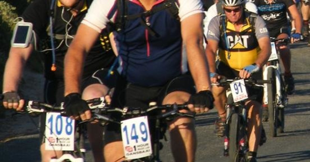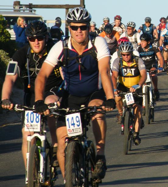 'n Deel van die deelnemers aan die Lighuis-tot-Lighuis Bergfietswedren, aangebied deur die Gansbaai Lionsklub.