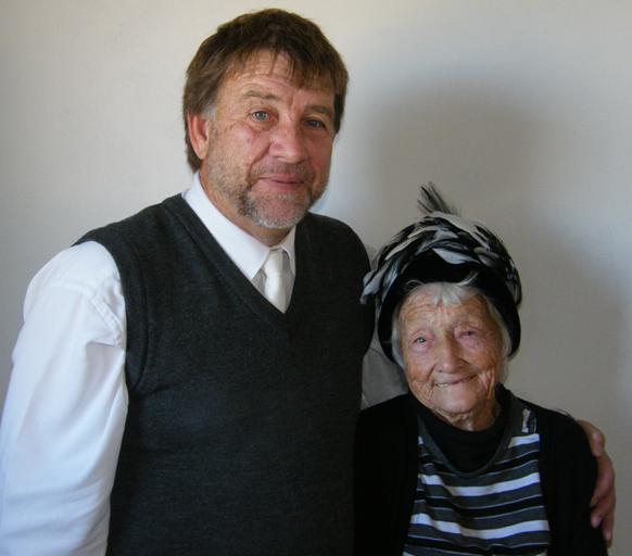 Die byna 95-jarige Enna Groenewald van Baardskeerdersbos wat besluit het om weer kitaar te begin speel, saam met dr Bobo van Zyl tydens verlede jaar se 90-jarige feesvieringe van die B'Bos NG-gemeente