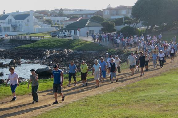 Deelnemers stap al langs die Kleinbaaikus met die gruispad langs, dan oor ‘n stukkie natuurlike kuspad verby die Rooikransies en die laaste gedeelte al met die teerpad kuslangs voor Franskraal verby tot by die Strandveldmuseum. Rolstoele is baie welkom en sluit in Franskraal by die groep aan. "Maak seker u plaas u naam op die lys by Herberg-aan-See Tehuis vir Bejaardes [028 384 0501], aangesien ons die getalle benodig om die nodige reëlings te tref en daar is wel 'n afsnypunt vir die getalle," versoek Francia. Deelnemers sal van ‘n koevert met instruksies voorsien word. Die koeverte word na die eindpunt saamgeneem, met donasies daarin. Sy kan ook geskakel word om name op die lys aan te bring en dan kan die koeverte by die beginpunt gekry word.
