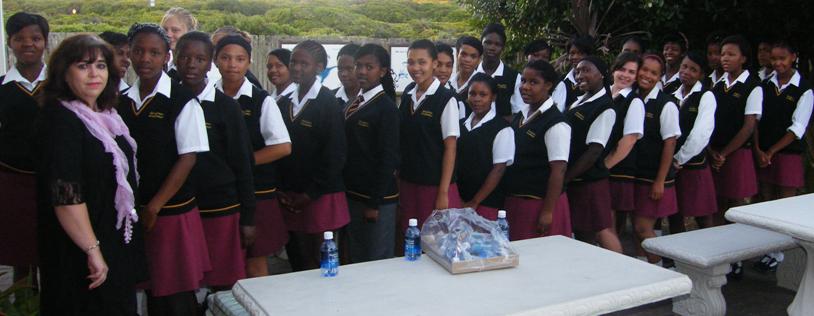 Die dogters-koorlede van Gansbaai Academia wat olv Liesel Mostert in die Great White House opgetree het
