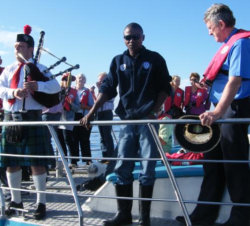 Dinsdagoggend is 'n groot hoeveelheid gaste op Wilfred Chivell se twee bote, Whale Whisperer en Slashfin, na die gevaarlike "Birkenhead"-rots geneem. Die twee bote het langs mekaar digby die rots "parkeer" vir die tradisionele kranslegging ter see, met Rev Dr James Gray wat 'n kort diens gelei en 'n gebed gedoen het. Mark Robson het Those in Peril on the Sea op sy doedelsak gespeel, waarna die kranslegging plaasgevind het.