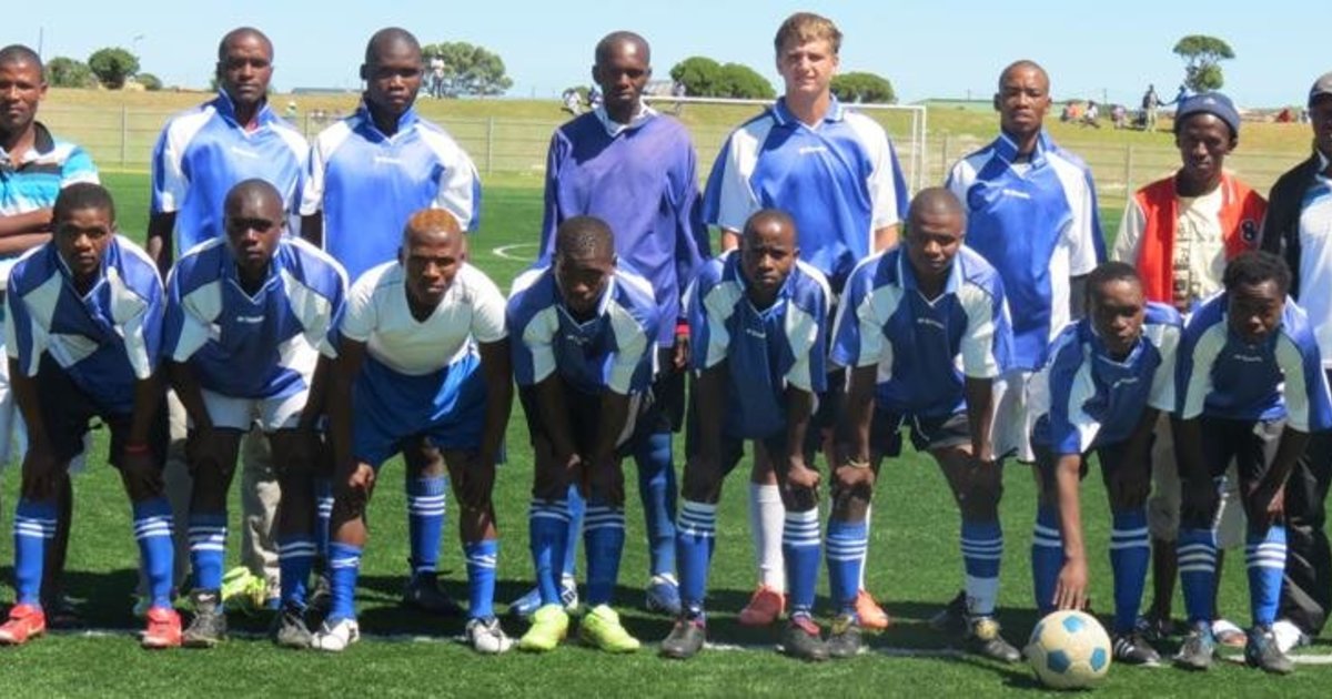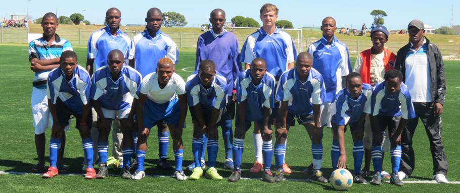 An avid sportsman, who excels in rugby at Hermanus High School is also a very enthusiastic soccer follower. André-Pierre (Spike)(16) and his father, André Gouws, therefore decided two weeks ago to go and watch a game of soccer at the Afro Turf pitch at the Gansbaai Community Sports Grounds. The Power Line Football Club was in action and Spike asked his father: “Dad, do you think they will allow me to play for them.” André said: “We can only ask” and approached coach, Derrick Mvilapa. Derrick invited him to register Spike. He had to give the coach a copy of his ID and a R40 fee for registration. He also asked for André’s cellphone number. The next Saturday André got a surprise phone call from the coach. “I want your son to play as striker for my team tomorrow.” André immediately went down to the New Harbour where Derrick is employed as a security guard. He registered Spike as a member of Power Line FC. On Spike’s arrival at the soccer field on Sunday he was warmly welcomed by his new team mates and played a very enjoyable game. Spike is looking forward to be a regular in the team for the rest of the season.