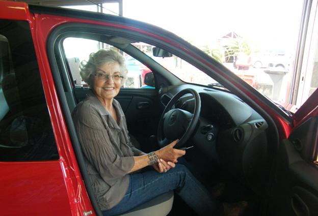 Hubie Kriel sit hier met 'n tevrede glimlag in haar splinternuwe Nissan NP200 1.6i