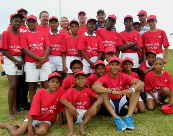 Die o/13 spanne vanuit Laerskool Gansbaai, Gansbaai Primêr (Blompark), Laerskool De Bron (Stanford) en Laerskool St Pauls (Stanford) was teenwoordig. "Verskeie afrigtingsklinieke sal gedurende die volgende drie maande vir laerskole in die Overberg aangebied word. Ons doel daarmee is om die balvaardighede van die 0/13-spelers nog verder te verbeter," het Johan van Zyl, Handelaarshoof van Hermanus Toyota, gesê. Johan het voorts gesê die meeste van hierdie kinders het nog nooit die voorreg gehad om ‘n Curriebeker, Super 15 of Springboktoets te kon bywoon nie. "Juis daarom het Hermanus Toyota besluit om die plaaslike 'rugby-held', Gio Aplon, in te span om met die afrigtingsklinieke behulpsaam te wees.” In hierdie verband het Gio gesê: “Die Here het my ‘n talent gegee, en om iets hiervan terug te gee is die minste wat ek kan doen.” Taktiese bewegings, hanteringsvaardighede en losskrumtegnieke is die fokuspunte tydens die oefensessies.