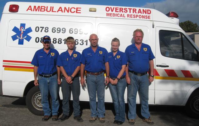 Overstrand Medical Response het in 2009 tot stand gekom en hulle eerste optrede met 'n wakende "mediese-oog" was tydens 2009 se Fees van die Ganse. Sedertdien het positiewe groei plaasgevind en in Januarie 2010 het die ambulans, 'n ware aanwins vir Gansbaai, bygekom. 'n Verdere voordeel van hulle bedrywighede is onder andere etlike Noodhulpkursusse wat al deur hulle aangebied is, vanaf Vlak 1 tot Vlak 3, asook hulle teenwoordigheid tydens sport- en ander byeenkomste. "Ons sorg ook dat ons by die aanstelling van nuwe personeel slegs van plaaslike mense gebruik maak," sê Riaan. Voorbeelde hiervan is Riaan se dogter, Chantell Buys, Steven Breytenbach van Pearly Beach en 'n 2012 Gansbaai Academia matrikulant, Abrie van Wyk, wat tans 'n student is met die oog op ambulansdienste en wie as vrywilliger by hulle werk. Hulle dienste is beskikbaar vir Gansbaai en omgewing, Pearly Beach, Baardskeerdersbos, Stanford en die plaasge-meenskappe. Die gedugte span bestaan tans uit Cassie Carstens en Riaan Buys, Chantell Buys, Steven Breytenbach en Abrie van Wyk. "Ons is dankbaar teenoor Gansbaai se verskillende spreekkamers vir uitstekende samewerking en ondersteuning van veral ons ambulansdienste," sê Riaan. Hy het ook sy waardering teenoor die onderskeie dokters vir hul samewerking uitgespreek. Goeie samewerking tussen Overstrand Medical Response met die verkeersmanne, brandweer en SAPD is ook aan die orde van die dag.