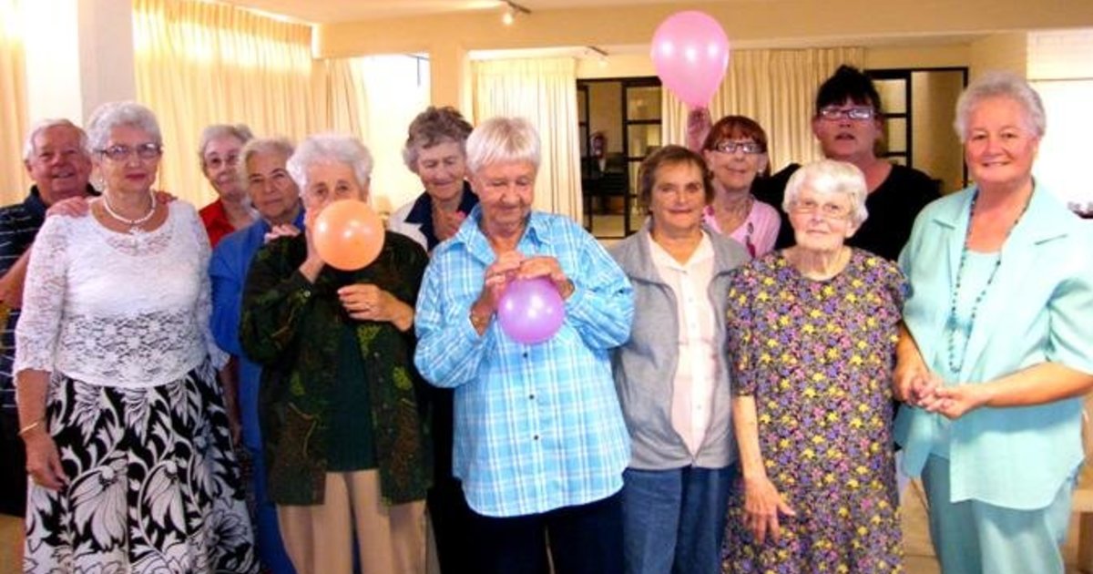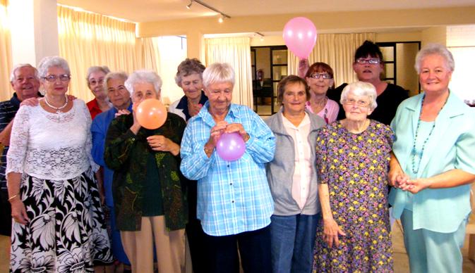 Hier is die groep Seniors (diè sonder blaasprobleme) besig om balonne op te blaas