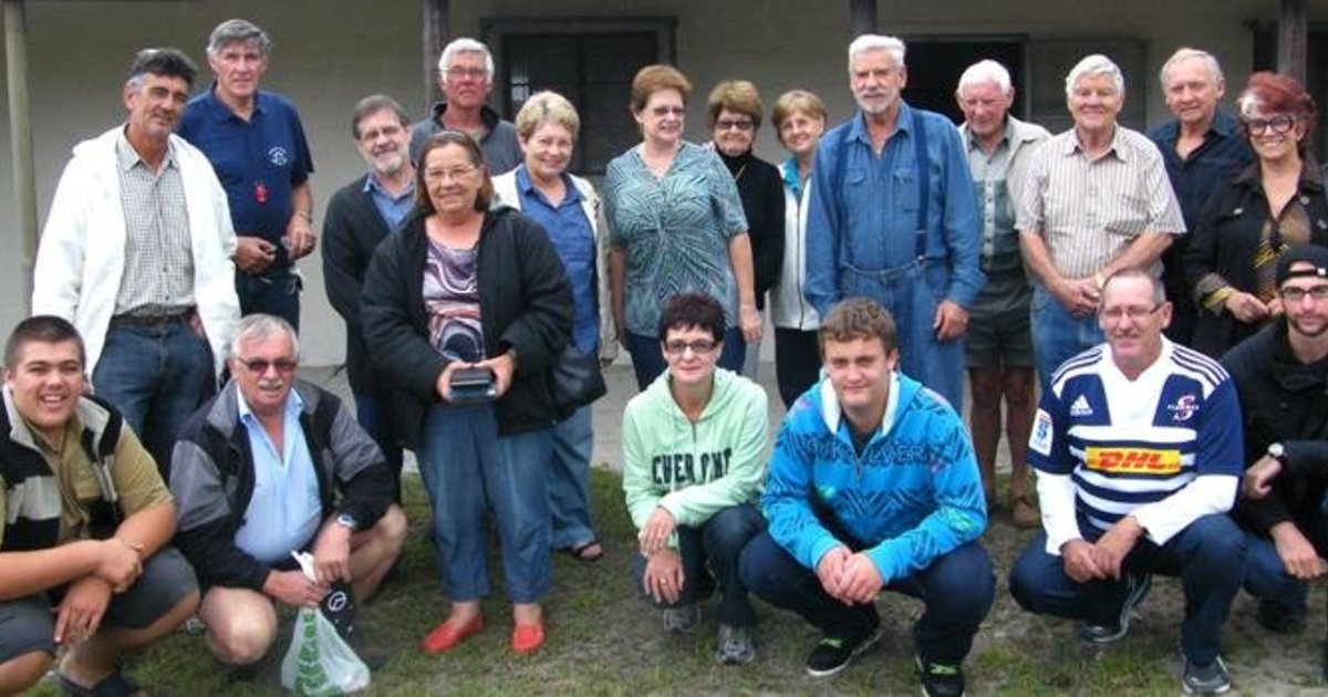 Die groot groep deelnemers aan Gansbaai Pistoolklub se Opeskietdag by hulle klubhuis