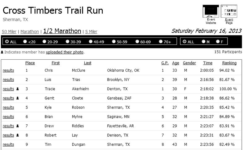 Gerrit Cloete (28) het hierdie prestasie behaal toe hy saam met 150 atlete van 19 state deelgeneem het aan 'n veeleisende boswedloop (trail run) oor 21,1 km by die Texoma-meer op die grens van Texas en Oklahoma. Gerrit, alom bekend as Janes, werk as ingenieur op 'n eiland in die Persiese Golf, maar beskou Gansbaai as huis. Sy pa, Gerrit Snr., is 'n afgetrede koerantredakteur en woon op Franskraal. Janes het dus as Gansbaaier vir die byeenkoms ingeskryf toe hy tydens sy vakansie in die VSA daaraan deelgeneem het.
