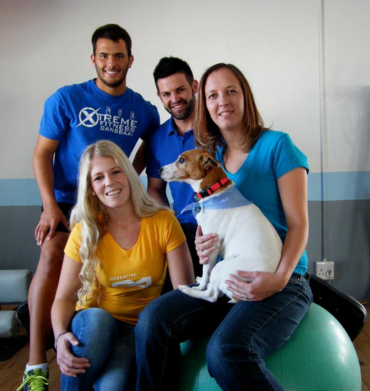 Voor vlnr is Yolandi Kriel en Jackie Lombaard, met Junior Xtreme op haar skoot. Agter vlnr is Jason van Rooyen en Pieta Botes.