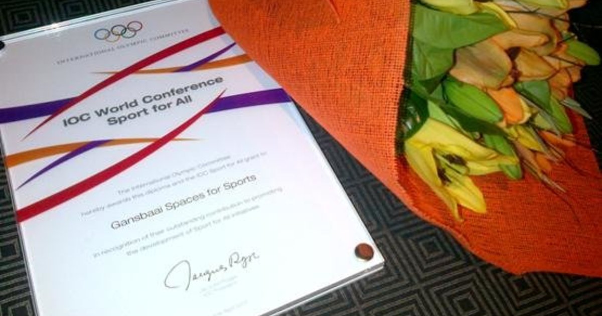The Gansbaai Spaces for Sports site won the Sports facilities and public spaces Grant at the 15th International Olympic Committee Conference on Sport for All held in Lima, Peru, from 24 – 27 April 2013. The Conference is important for connecting sports bodies and federations around the world, sharing best practise and partnerships in sport for development, and provides a platform for the Olympic movement to promote sport as a tool for social change. Leán Terblanche from the Football Foundation of South Africa was invited to accept this prestigious IOC award and participate in a panel discussion about sport and education for the social benefit of communities.