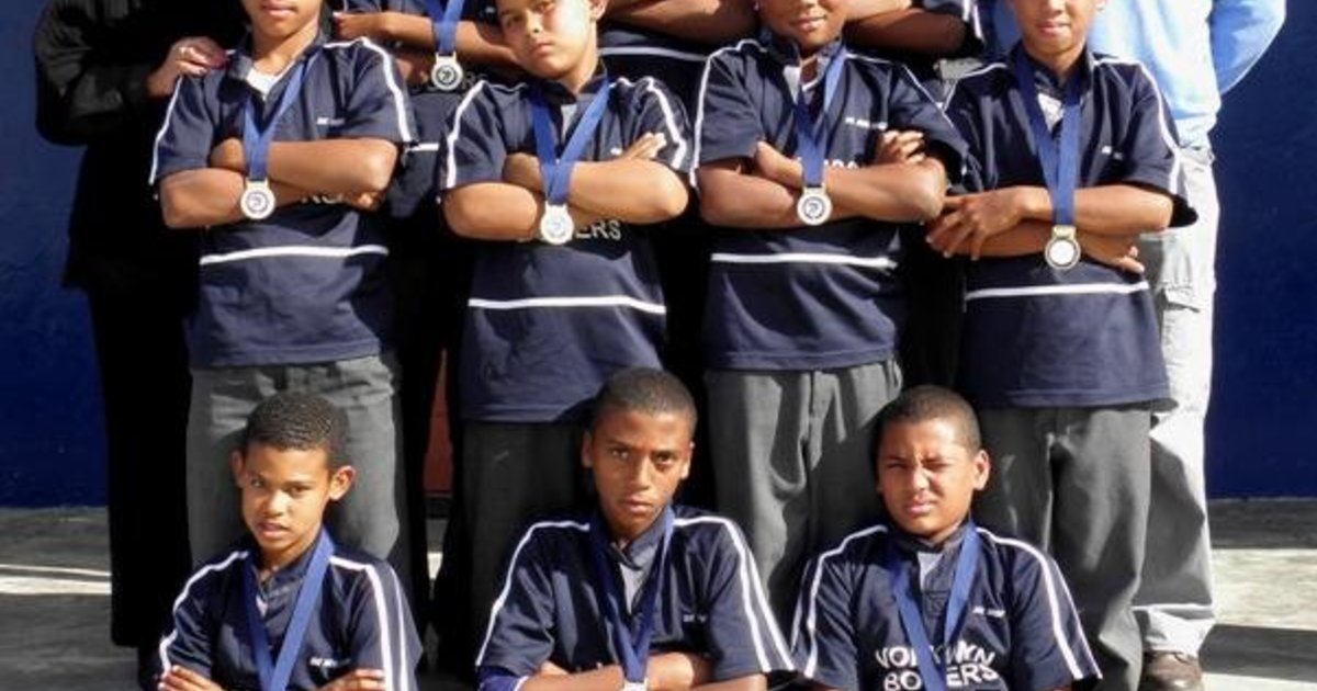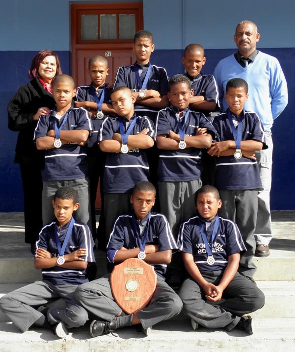 Links voor vlnr is Kaywin May, L-Dre Titus (kaptein met die skild) en Linden van der Walt. Middel vlnr is Austin Phillips, Nolan October, Sharlrique Dreyer en Anton Tobias. Agter vlnr is Sybill October (skoolhoof), Danwill Adams, Asthiaan Hendrick, Cole Warries en Nichol Dreyer (onderwyser en afrigter).