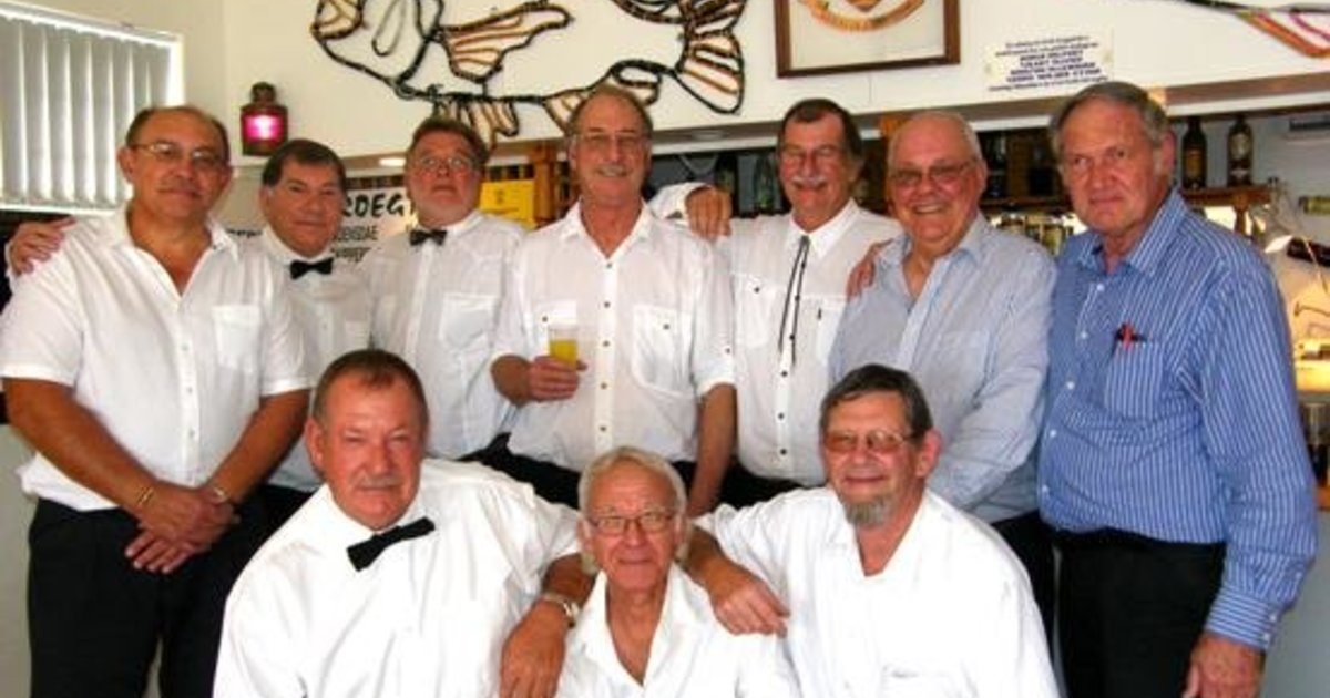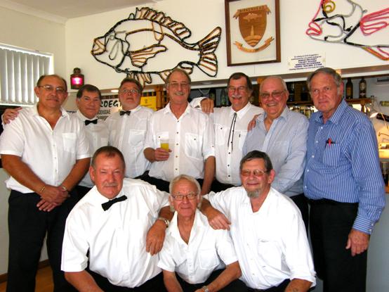Die groepie manne wat hul onthaalstaal met Moedersdag getoon het, met voor vlnr Bev Swart, Raymond Rabe en Kobus du Toit. Agter vlnr is Johan Wiese, Phillip Fourie, Steve Muller, Dirk Bester, Dirk Buchner, Ralph Gibbs en Hardus Botha