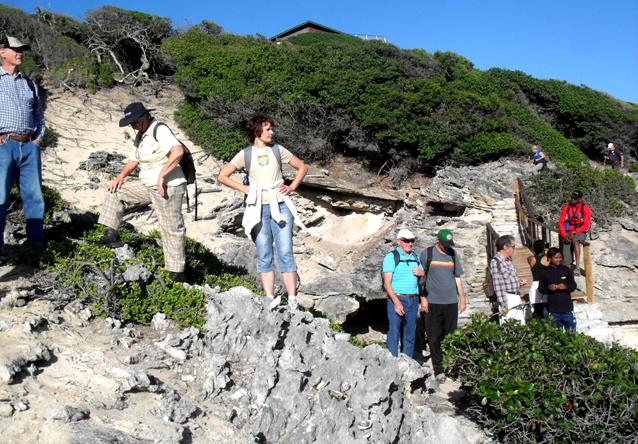 "Saturday 4th May was scheduled for the hike to Napier on the Grootberg trail. Since they had had rain the previous day and throughout the night, Peter Albertyn said he would not recommend that we do the hike," het Rob Koppel gesê. "Having done the recce with Anita and Jill the previous Friday, and thus fully aware of the terrain we had to hike, it was decided to put it to the hikers at the info centre later, as to what we would do." Ná deeglike oorweging het die groep stappers toe besluit om eerder die mooi staproete tussen Gansbaai Karavaanpark en Klipgat te stap. Bykans 20 stappers het opgedaag.