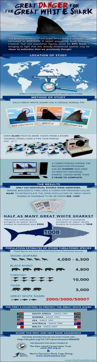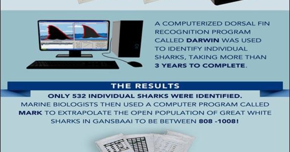 Ongeveer 20 000 foto’s van Grootwithaaivinne is tussen 2007 en 2011 vanaf Marine Dynamics se haai besigtigings boot, Slashfin, en die Dyer Eiland Bewarings Trust navorsings vaartuig, Lwazi, geneem. Hierdie foto’s is sorgvuldig geanaliseer deur ‘n rekenaarprogram, genaamd Darwin, wat elke individuele haai se vin gemeet het en so ongeveer 532 haaie positief geïdentifiseer het. Daarna is die data deur ‘n merkprogram verwerk, waarna ‘n ekstrapolasie gemaak is wat bevind het dat die totale hoeveelheid individuele haaie wat ons waters besoek in die omgewing van 808 tot 1008 lê. Vyftig persent minder as wat aanvanklik vermoed is.
