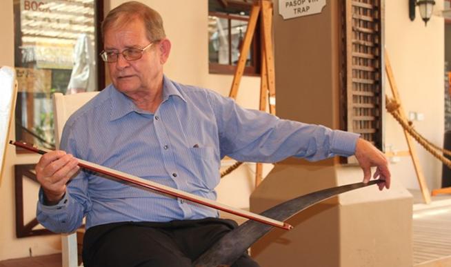 The 66-year-old saw man performed a portion of his nation’s national anthem. Asked why the musical saw is the instrument he chooses to play, Mr. Vermeulen replied it’s the only instrument he can play!” Hannes het reeds in 1954 saam met sy ouers vanaf Parow Vallei na Gansbaai verhuis, waar sy pa onder andere die destydse Eureka Losieshuis bedryf het. Hy was tot 1960 in Gansbaai op skool. Dit het hom sowat 2 jaar geneem om die saag as ‘n musiekinstrument te bemeester, iets wat hy al vir 40+ jaar doen. “Die bywoning van die New York City Musical Saw Festival as die enigste Suid-Afrikaner was nie net ‘n groot voorreg en eer nie, maar ook ‘n hoogtepunt in my lewe,” het Hannes gesê.