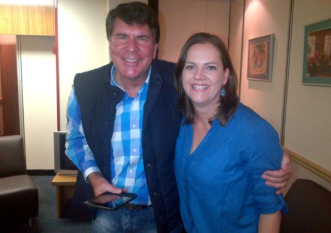 Maritha Kriel van Gansbaai se dogter, Annemie Bruce, saam met Johan Stemmet van TV2 se Noot-vir-Noot, tydens die opname van die program