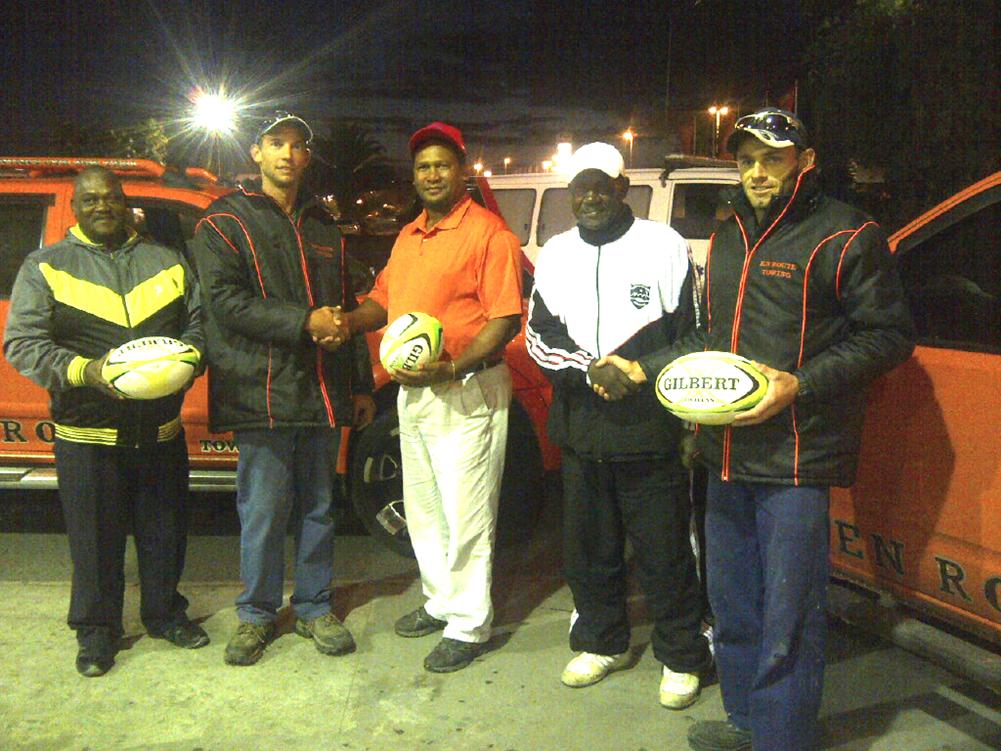 Die Universals Voetbalklub van Stanford het op 19 Junie Gilbert-rugbyballe vanaf En Route Insleepdienste ontvang. “Ons wil Jaco Truter en sy span graag vir hulle bydrae tot die klub van harte bedank,” sê Graig Niemand van die klub. “Voorspoed word aan En Route Insleepdienste met hulle puik diens wat hulle aan die gemeenskap lewer, toegewens.” Die rugbyballe is deur Charl Henn en Wayne Theron van En Route Insleepdienste oorhandig, met Cornelius Booysen (voorsitter), Johannes Oktober (sekretaris) en Israel Spandiel (kassier) wat dit namens Universals Voetbalklub in ontvangs geneem het.