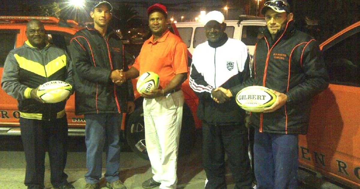 Die Universals Voetbalklub van Stanford het op 19 Junie Gilbert-rugbyballe vanaf En Route Insleepdienste ontvang. “Ons wil Jaco Truter en sy span graag vir hulle bydrae tot die klub van harte bedank,” sê Graig Niemand van die klub. “Voorspoed word aan En Route Insleepdienste met hulle puik diens wat hulle aan die gemeenskap lewer, toegewens.” Die rugbyballe is deur Charl Henn en Wayne Theron van En Route Insleepdienste oorhandig, met Cornelius Booysen (voorsitter), Johannes Oktober (sekretaris) en Israel Spandiel (kassier) wat dit namens Universals Voetbalklub in ontvangs geneem het.