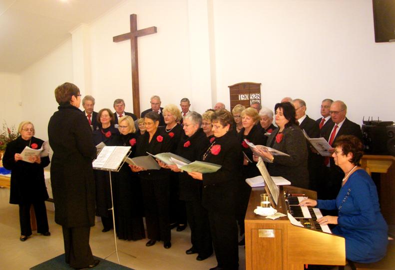 Die NG-kerkkoor op hul stukke met die “Battle Hymn”