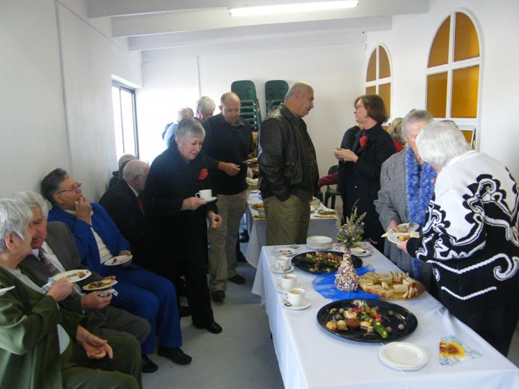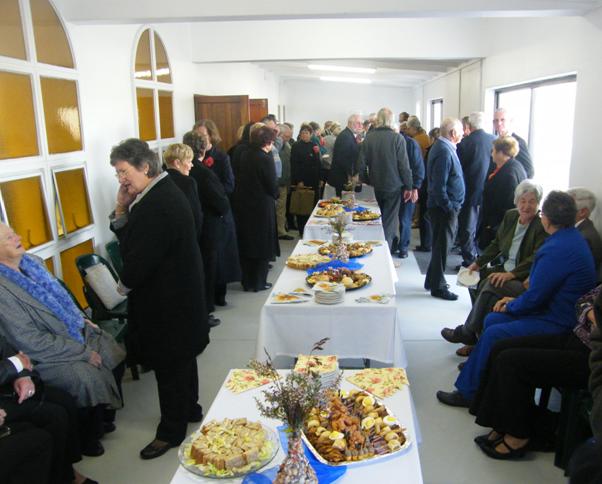 Gesellige oomblikke in die nuut-aangeboude saal van Pearly Beach NG-gemeente