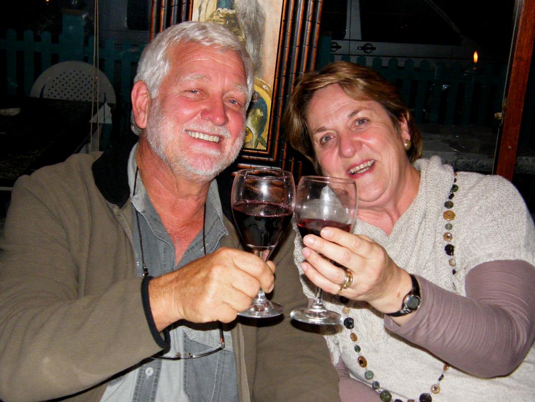 Roelof en Ina Diener klink ‘n glasie op Roelof se 60ste verjaardagvieringe saam met vriende in B-Blondes restaurant