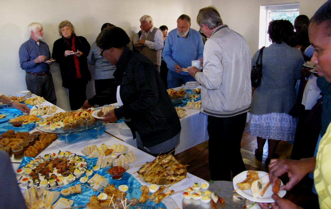 A sociable moment during the light lunch