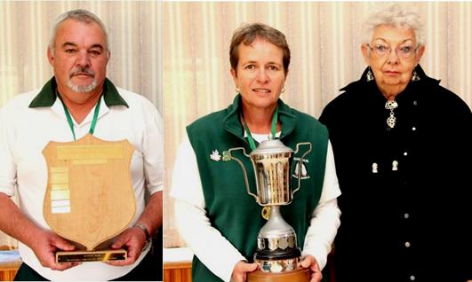 Jaco Swart (links) Beste Vordering en Kim Breach Wenner 2013. Erelid Hettie Petersen, het die pryse oorhandig.