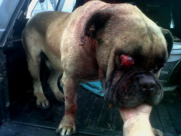 Phillip Schreck van BARC het destyds gesê dit is ‘n pragtige, saggeaarde Bullmastiff van 80kg wat BARC aan die vullisterrein-personeel geskenk het om hulle te help op die terrein op te pas. Die hond is vermoedelik weggelok waarna hy met ‘n harde voorwerp teen die kop geslaan is, aangesien daar ‘n baie groot swelling aan die een kant van sy kop was. Daarna is altwee sy oë op ‘n ondenkbare en gruwel-wyse uitgesteek. "Met my aankoms by die Bullmastiff is ek met absolute afgryse gevul oor altwee sy oë wat op ‘n onmenslike wyse uitgesteek is en daarna moes hy deur die veearts uitgesit word," het Phillip destyds gesê. "Dit sal my vir die res van my lewe bybly."