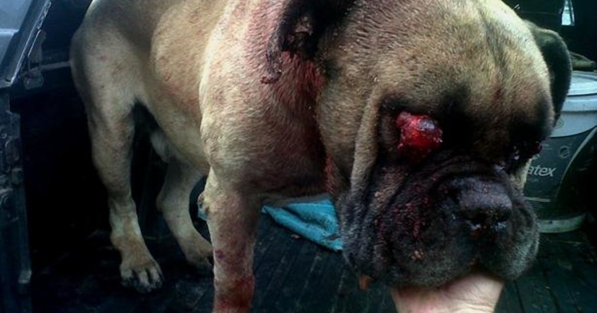 Die pragtige Bullmastiff hond wat uitgesit moes word nadat sy oë deur Martin Block uitgesteek is