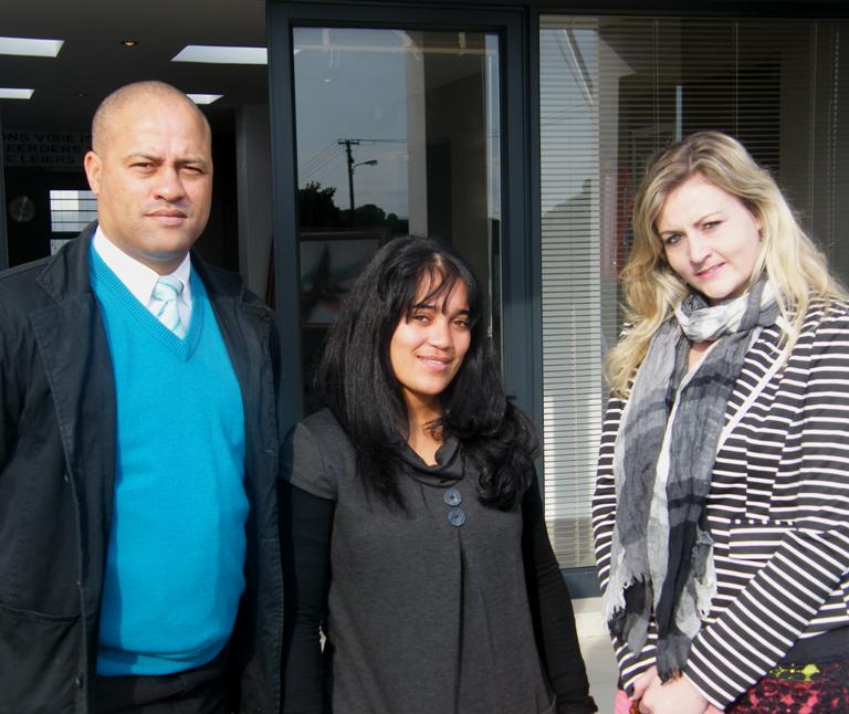 Vlnr is Neil Pedro, nuwe Adjunkhoof van Gansbaai Primêr, saam met twee nuwe personeellede, Machè Fortuin en Salomi van Wyk