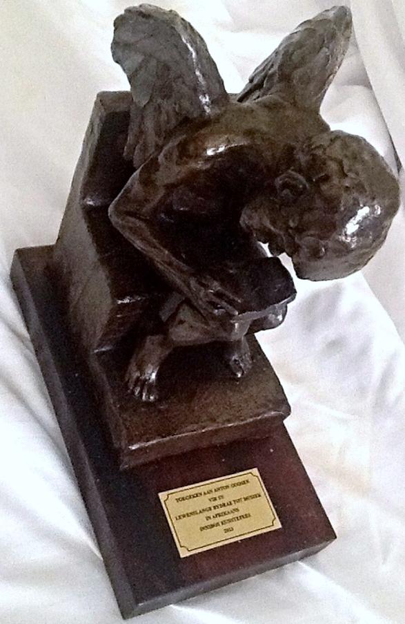 Anton Goosen (regs), het verlede week by die 10de Inniebosfees in Nel-spruit ‘n toekenning ontvang vir lewenslange bydrae tot Afrikaanse musiek. Die toekening is ‘n beeld deur die bekende beeldhouer Arend Eloff vervaardig.