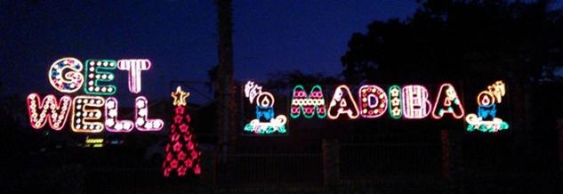 Norman Brown se “Word Gesond”- en “Happy Birthday”-boodskappe wat hy met dekoratiewe ligte vervaardig het