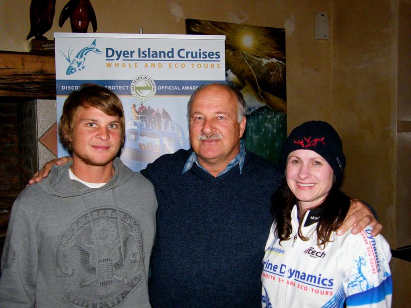 Vlnr is Dickie en Wilfred Chivell saam met Brenda du Toit tydens ‘n aanbieding oor seevoëls in die Great White House